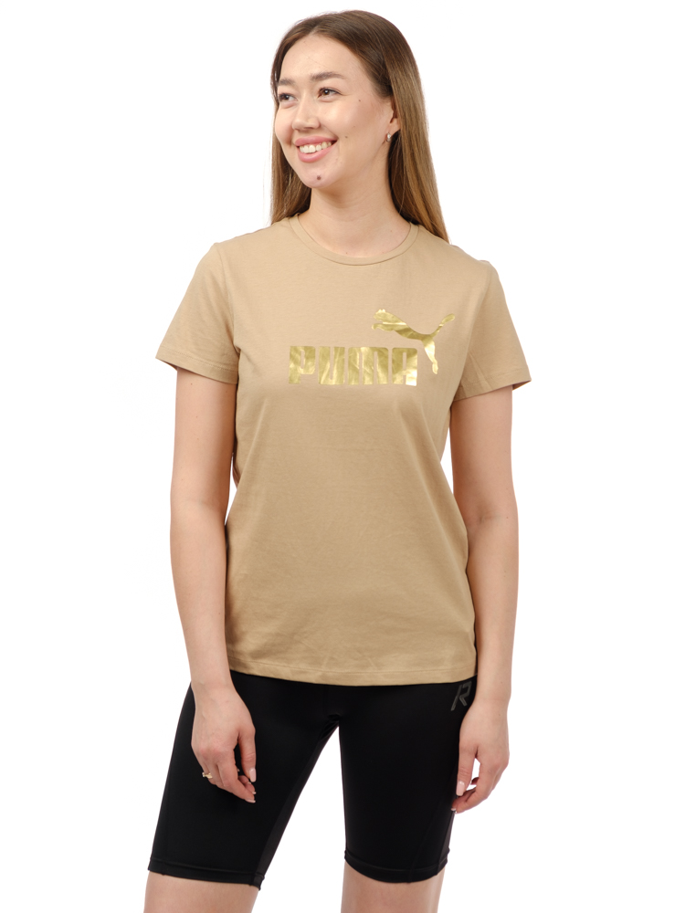 Футболка женская Puma ESS+ Metallic Logo бежевый/золотой