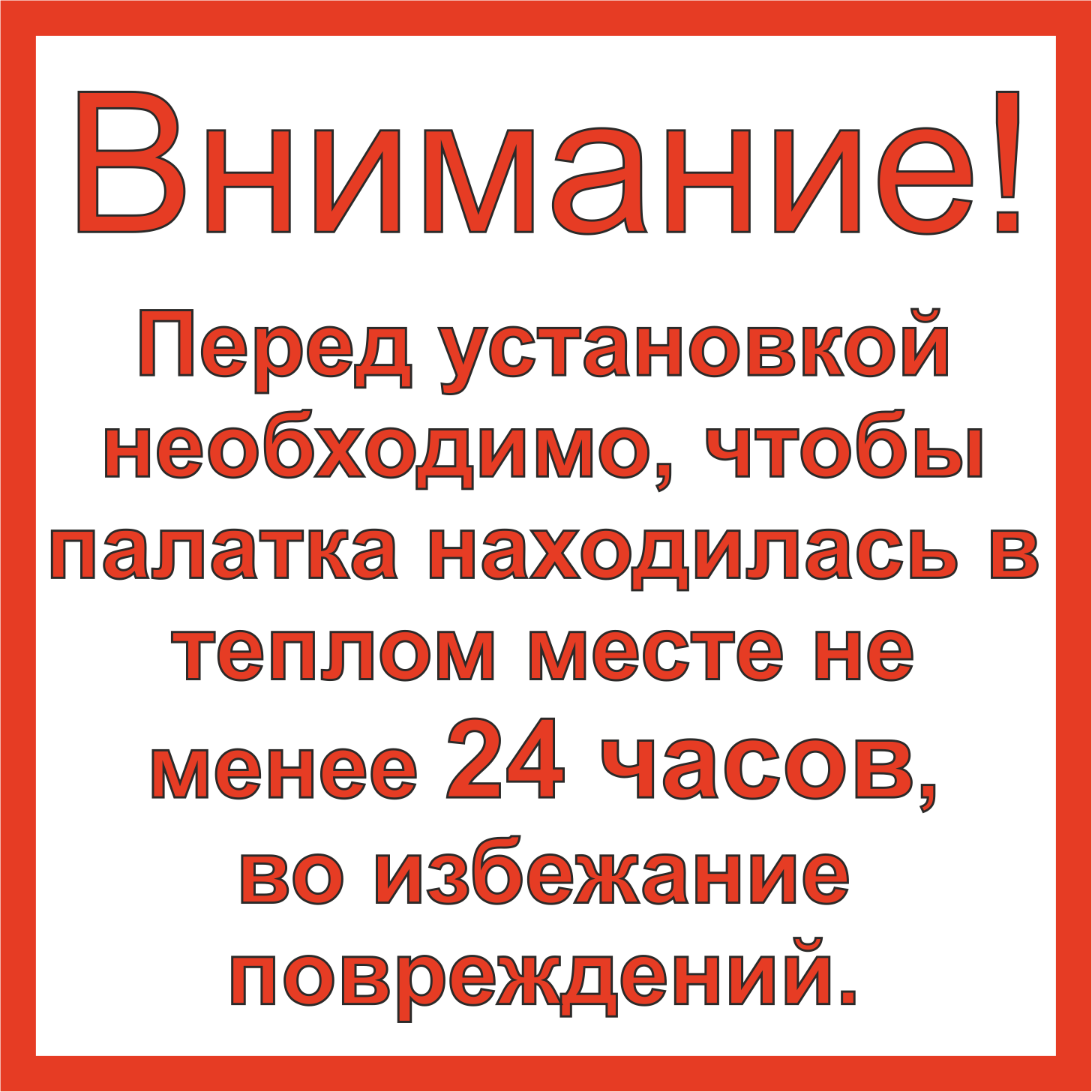 При установке палатки необходимо растянуть все штормовые растяжки, для обеспечения максимальной ветроустойчивости. ВНИМАНИЕ: оттяжки должны быть натянуты, но иметь небольшую слабину (провисание), в противном случае Вы можете повредить швы. В комплекте с палаткой идет 20 стальных колышков, насос высокого давления с манометром, штормовые растяжки и упаковочная сумка. Палатка может использоваться только при положительной температуре! Перед установкой необходимо, чтобы палатка находилась в теплом месте не менее 24 часов.